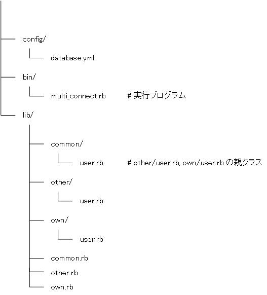 config/database.ymlを管理するクラス(MultiConnectConfig)を記載しています。