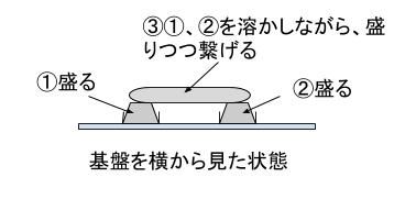 はんだブリッジをデフォルメして描くと、以下のような感じになります。